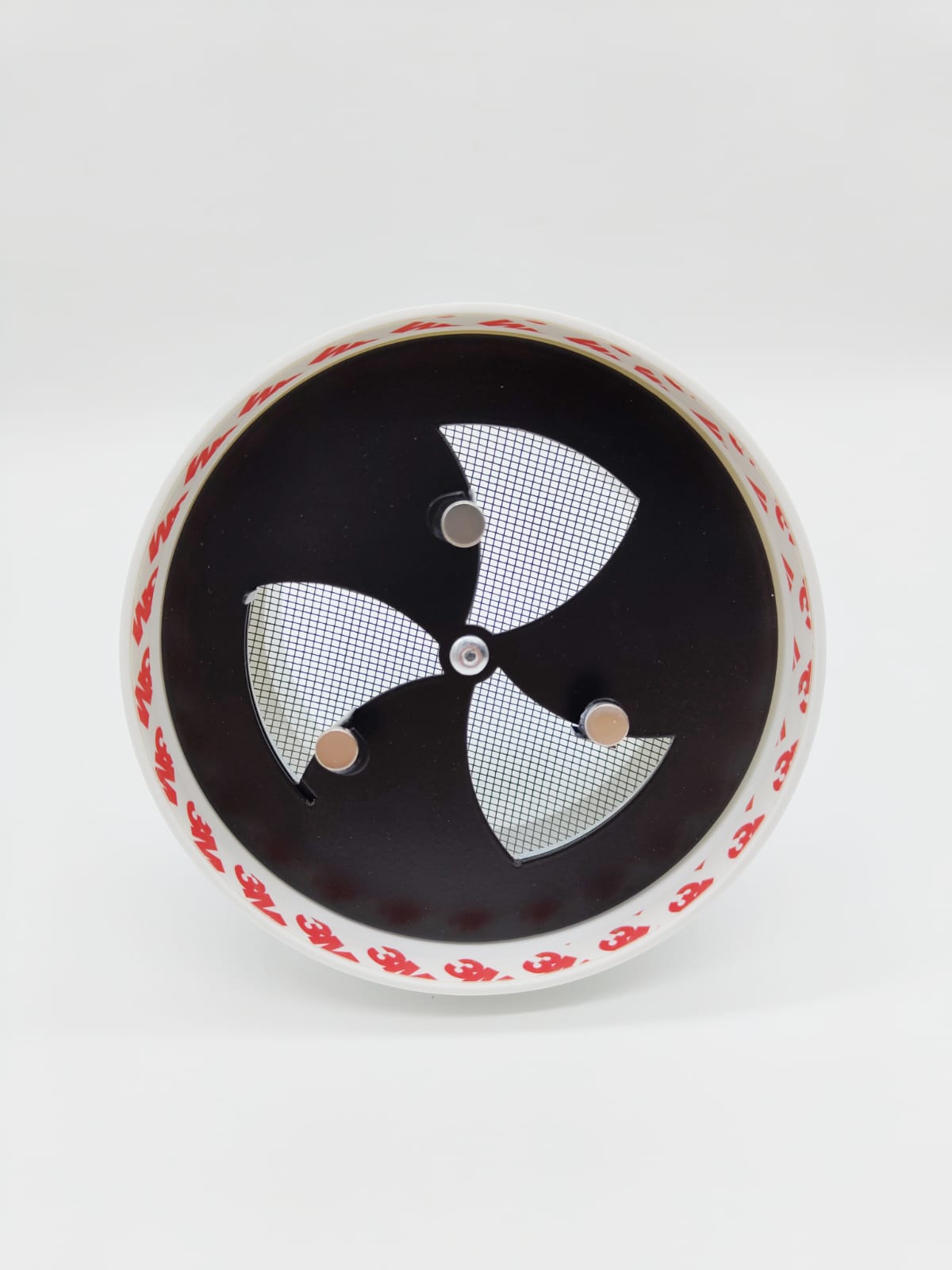 Диффузор состоит из пластикового перехода, металлической заслонкой, которой можно регулировать поток воздуха, либо полностью перекрыть его. К заслонке с помощью магнитов крепится декоративная круглая панелька, которую можно покрасить в цвет потолка. Так же по ободку диффузора имеется надёжный двухсторонний скот марки 3М, к которому крепится полотно натяжного потолка. Наши диффузоры оснащены москитной сеточкой, которая препятствует попаданию насекомых в помещение.