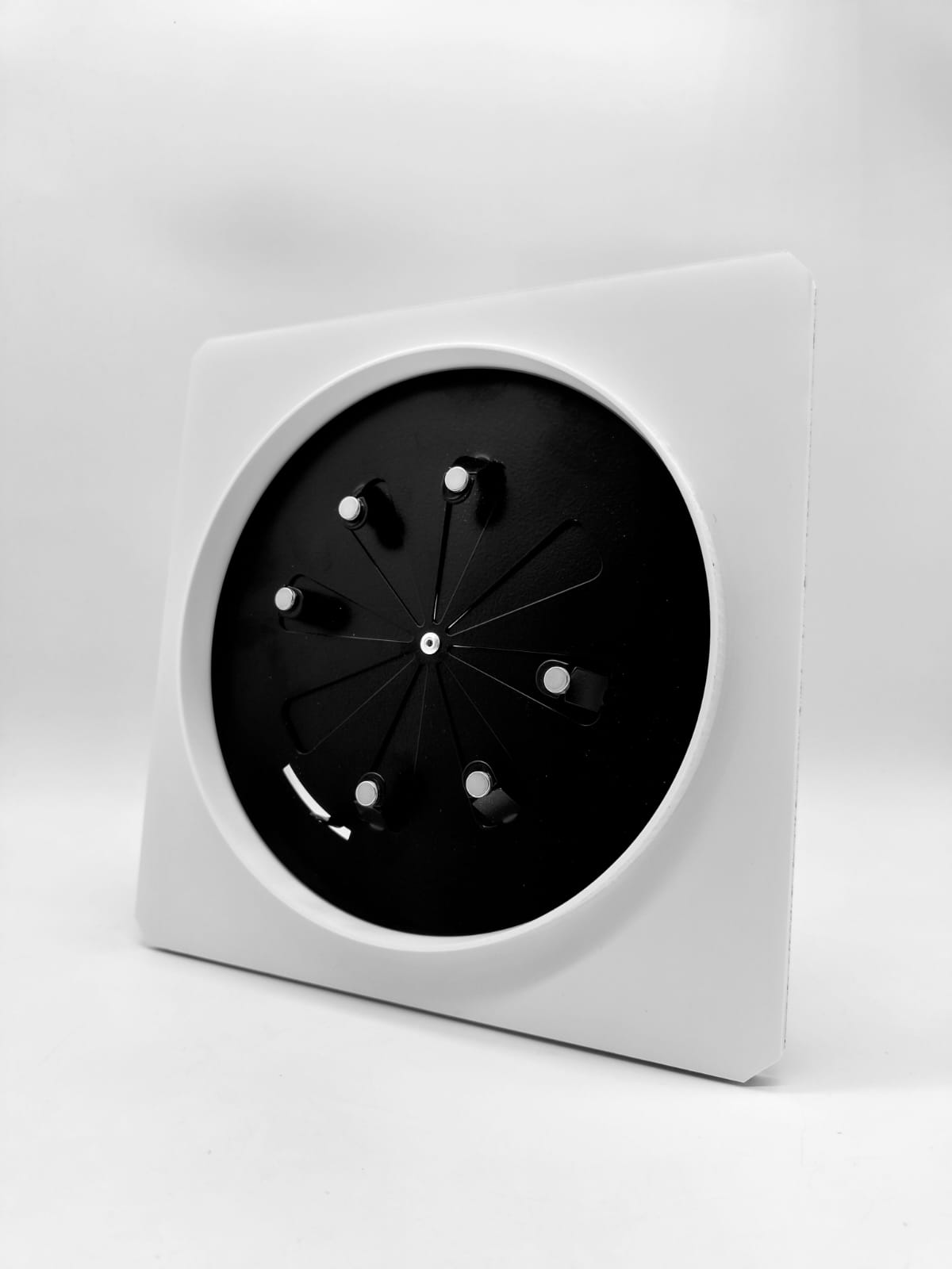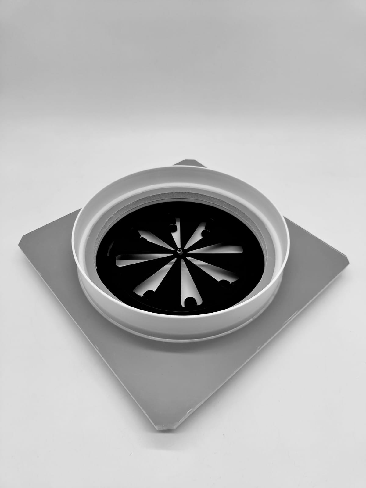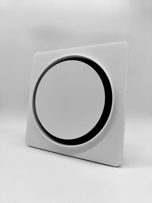 Так же диффузор состоит из металлической заслонкой, которой можно регулировать поток воздуха, либо полностью перекрыть его. К заслонке с помощью магнитов крепится декоративная круглая панелька, которую можно покрасить в цвет потолка. Так же по ободку диффузора имеется молярная сетка, для надёжной фиксации шпаклёвки. Наши диффузоры оснащены москитной сеточкой, которая препятствует попаданию насекомых в помещение.