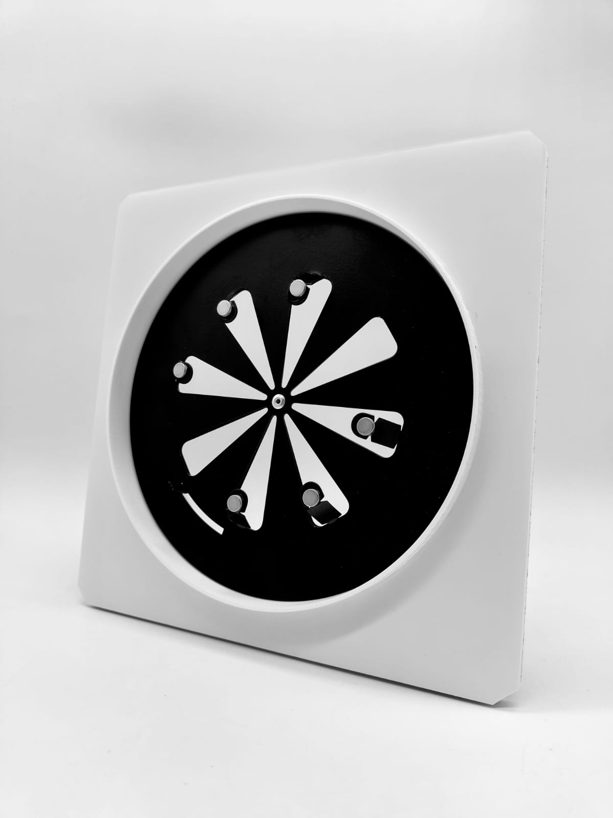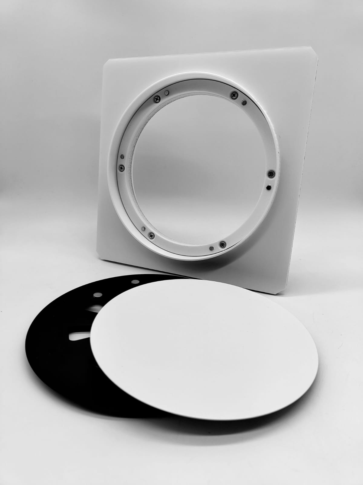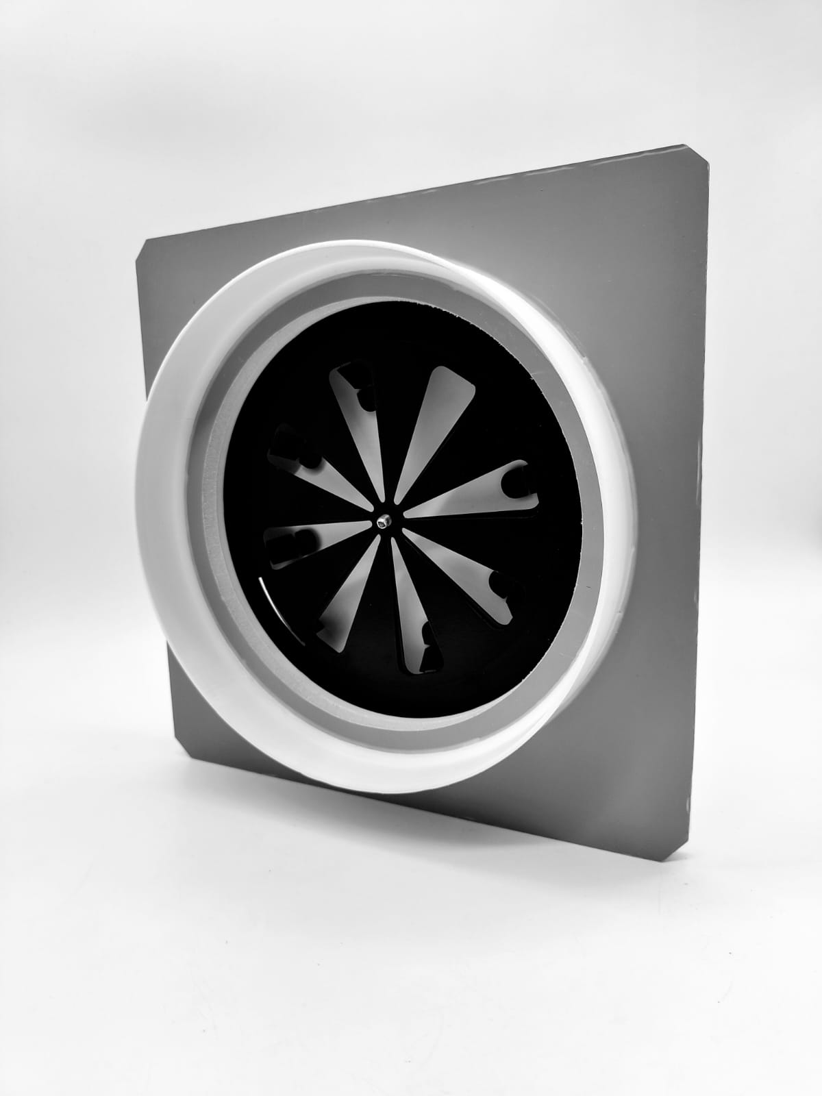 Так же диффузор состоит из металлической заслонкой, которой можно регулировать поток воздуха, либо полностью перекрыть его. К заслонке с помощью магнитов крепится декоративная круглая панелька, которую можно покрасить в цвет потолка. Так же по ободку диффузора имеется молярная сетка, для надёжной фиксации шпаклёвки. Наши диффузоры оснащены москитной сеточкой, которая препятствует попаданию насекомых в помещение.